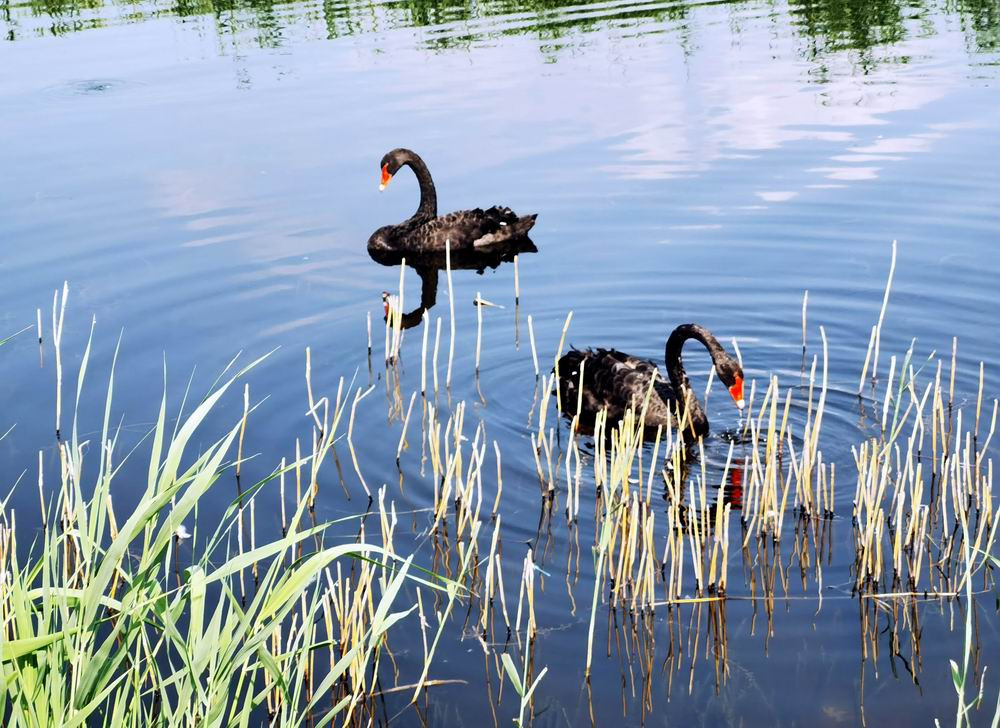 扎龙自然保护区内栖息着260多种禽鸟,这是黑天鹅。