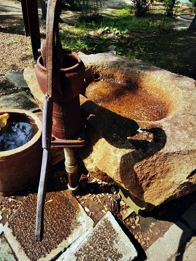 进入景区,检完票就可以直接搭乘电瓶车,大概10分钟就能到达景区主要景点。景区入口处的这个老式压水井,已经不多见。