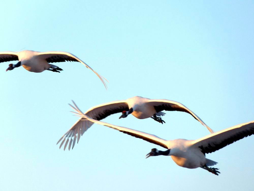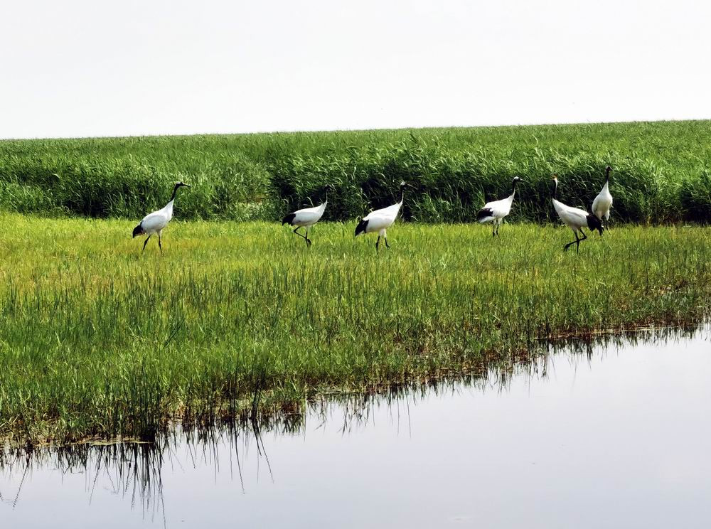 世界上现有鹤类15种,中国有9种,扎龙有6种;全世界丹顶鹤不足2000只,扎龙有400多只。图为扎龙国家级自然保护区的丹顶鹤。