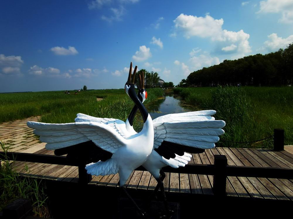扎龙自然保护区位于乌裕尔河下游,因嫩江支流乌裕尔河到此失去河道,漫溢成大片沼泽,苇丛茂密、鱼虾众多,是水禽理想的栖息地。这里栖息着260多种禽鸟,尤以丹顶鹤闻名于世,是驰名中外的“鸟的乐园、鹤的故乡”图为扎龙国家级自然保护区的丹顶鹤雕塑。