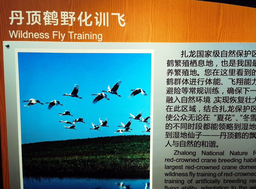 丹顶鹤的放飞,设计也是每天必修课和锻炼。图为丹顶鹤野化训飞的简介。