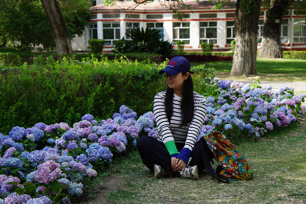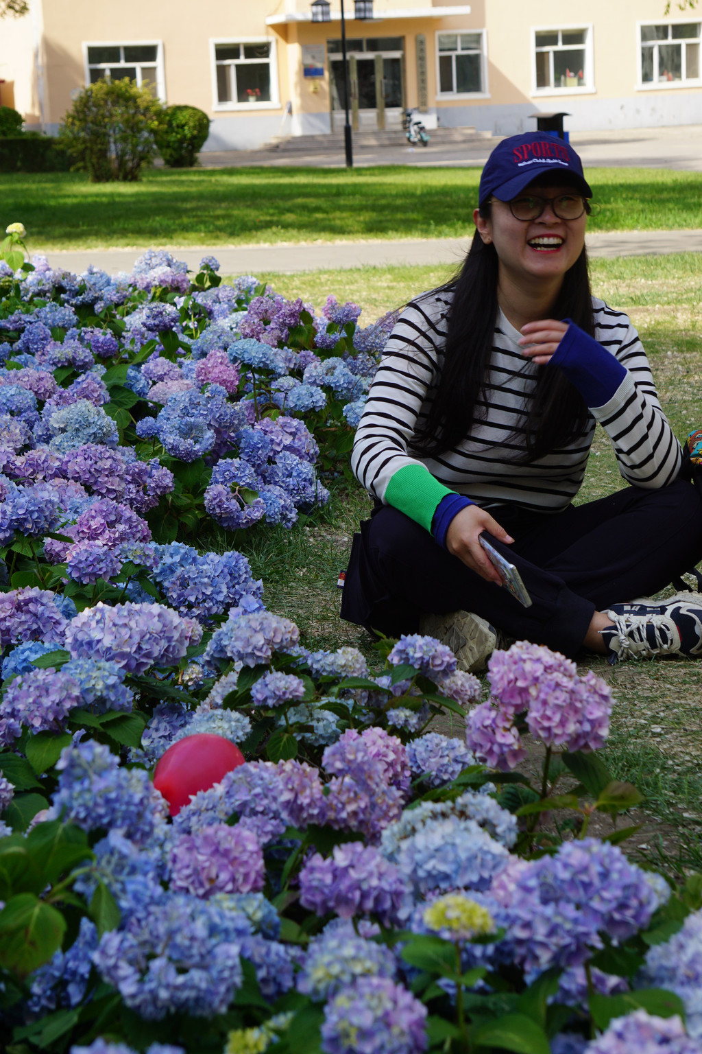 正在拍照时,小朋友们的气球飞了过来,闺蜜抓拍到了我大笑的瞬间。