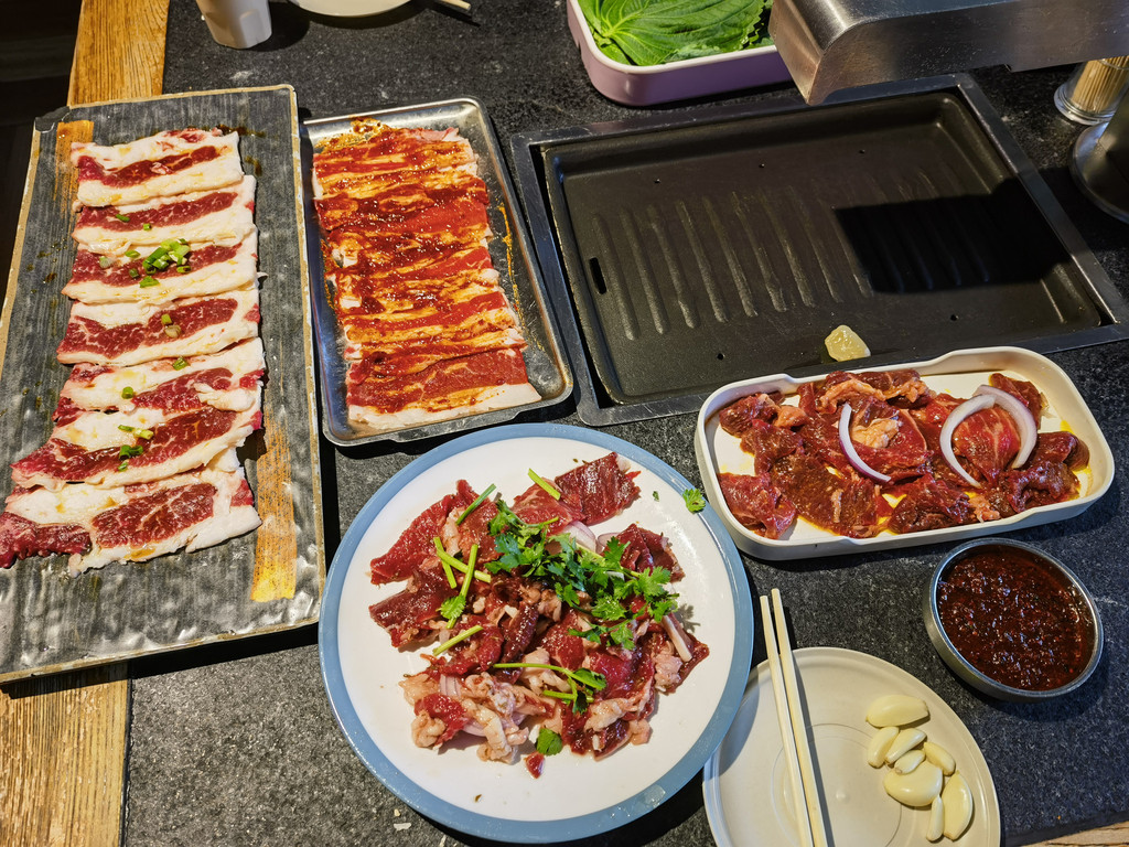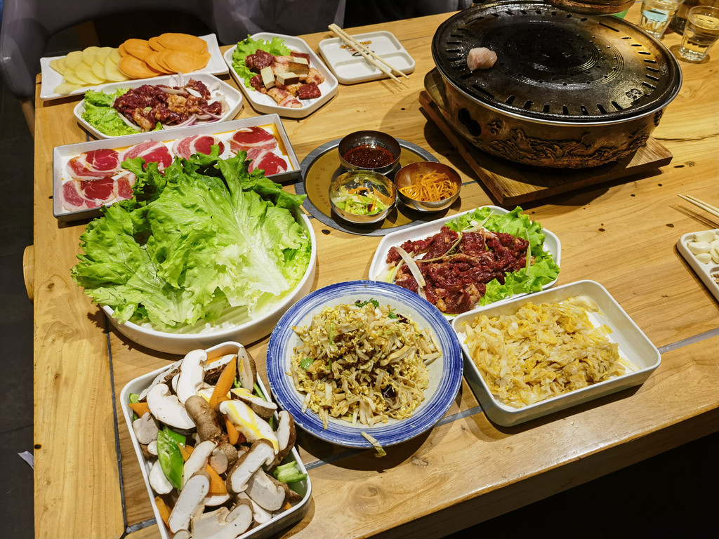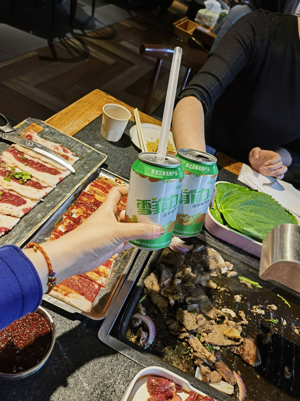 齐齐哈尔跟哈尔滨就是两温度,这边天气特别晴,公交2路居然是我扫码付车费,离酒店就4站,到酒店休息一会,查了下去哪吃烤肉,又坐公交去了金三顺家庭烤肉店(161元)。
