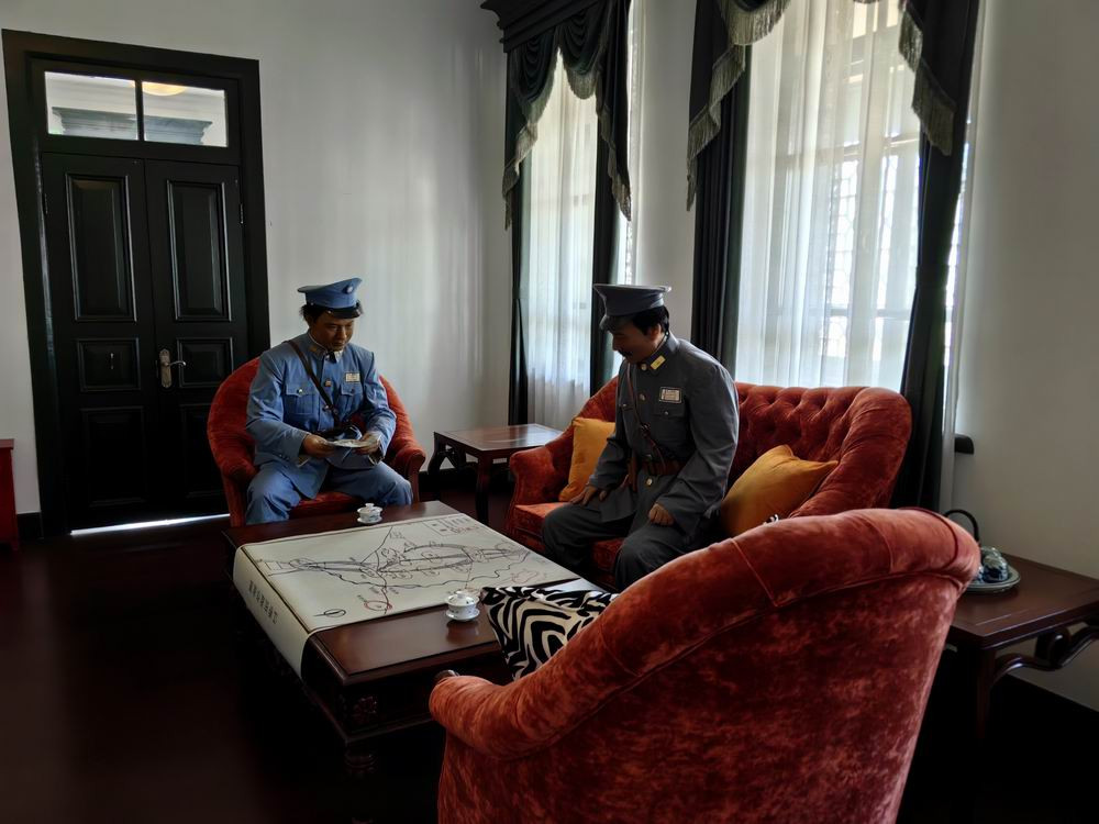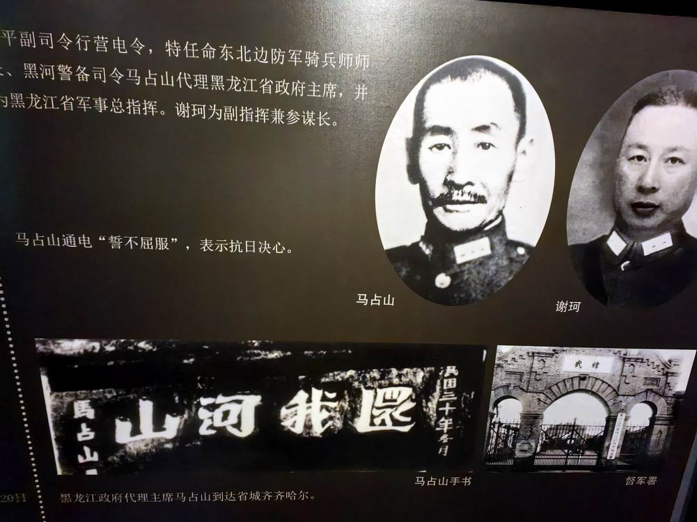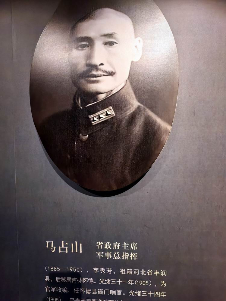 期间最值得一提的是,这里曾是打响武装抗日第一枪的马占山将军,指挥江桥抗战的总指挥部所在地。图为马占山将军的腊像。