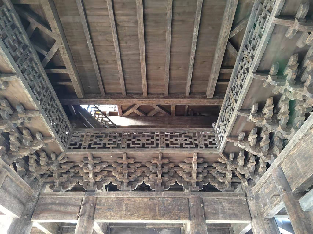 像这么大体量的建筑,整体都由榫卯连接,可以说极为少见,我们数一数一楼的三十二根立柱,根根直径都超过六十厘米,特别是中间的四根,由一整棵树制成,高二十八米,直径达八十厘米,可以想见当初建造缙福楼的时候,要花多少心血才能找到这样的木料,又要多少人工才能把缙福楼建造起来。