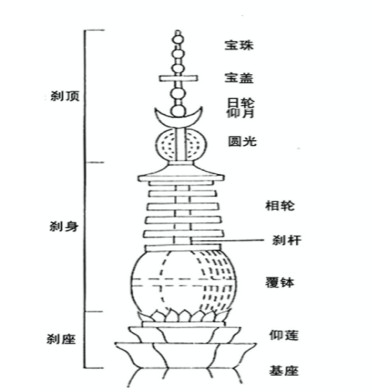 各种式样的塔都有塔刹,所谓是“无塔不刹”。印度的窣堵坡传入后,与中国传统建筑相的结合演化中,塔刹成为塔顶攒尖收尾的重要部分,分为刹座、刹身、刹顶三部分构成。