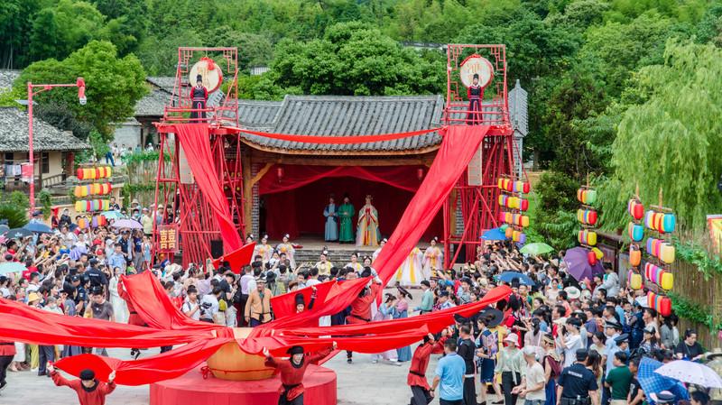 这里目前是免费开放的,很幸运的是,我们在这里看了一场盛大的沉浸式演出,据说是只有在盛大节日或大型活动才能看得到。整场演出可比拟千古情的盛大,然后再加上龙虎山的移动表演,说不定就在旁边冒出一个演员跳起来了,所以也总是有着惊喜。