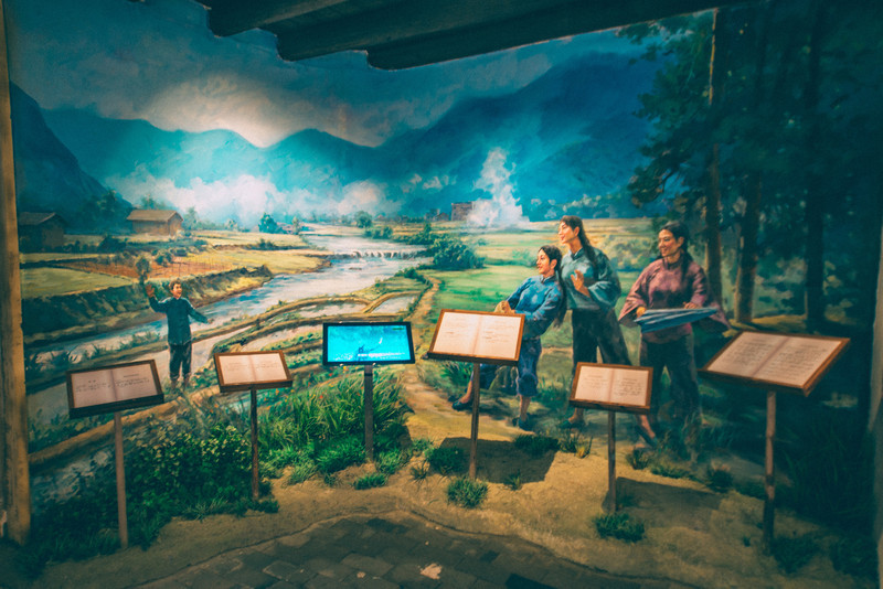 客家的围屋都是比较有象征性的建筑,以前为了抵御外来入侵而特意建造这样的。土围改造成了全南民俗文化体验馆,都是采用壁画+立体雕塑/真人样式,让人感觉自己就在其中,参与感非常不错。其中蓝巾帕厅还有两位老人在这现场展示手工编织技艺,据说蓝巾帕是客家人婚否的一个标志呢,山歌厅你还能点上一首山歌一起唱起来~还有其他像婚俗 酒俗等一系列的厅,还是蛮有味道的~