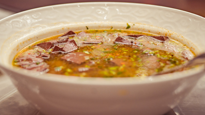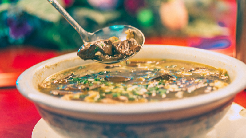 这里的猪血滑而嫩,都是真实猪血制成,老板每天4点就起来做猪血旺了