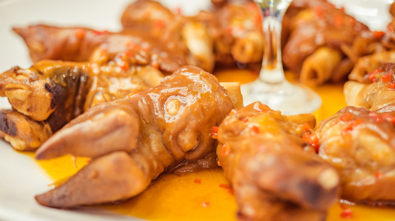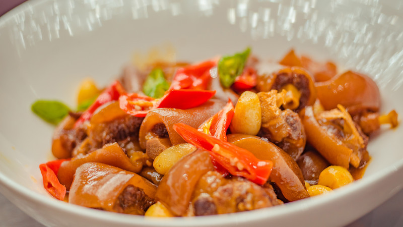 色泽金黄,皮软筋脆,看着就是诱人,蛋白质胶原蛋白丰富
