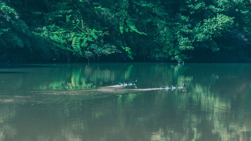 桃江左曲右弯,虽没有那些大江的一眼望到头的气派,但却有着园林设计里的犹抱琵琶半遮面的神秘感,拐过一个弯,你不知道在下一个弯会是宽阔的河道还是茂盛的森林在等着你,船的速度并不快,时不时还能看到野鸭白鹭等在水面嬉戏,微风拂面,瞬间感觉有了在扬州的感觉。