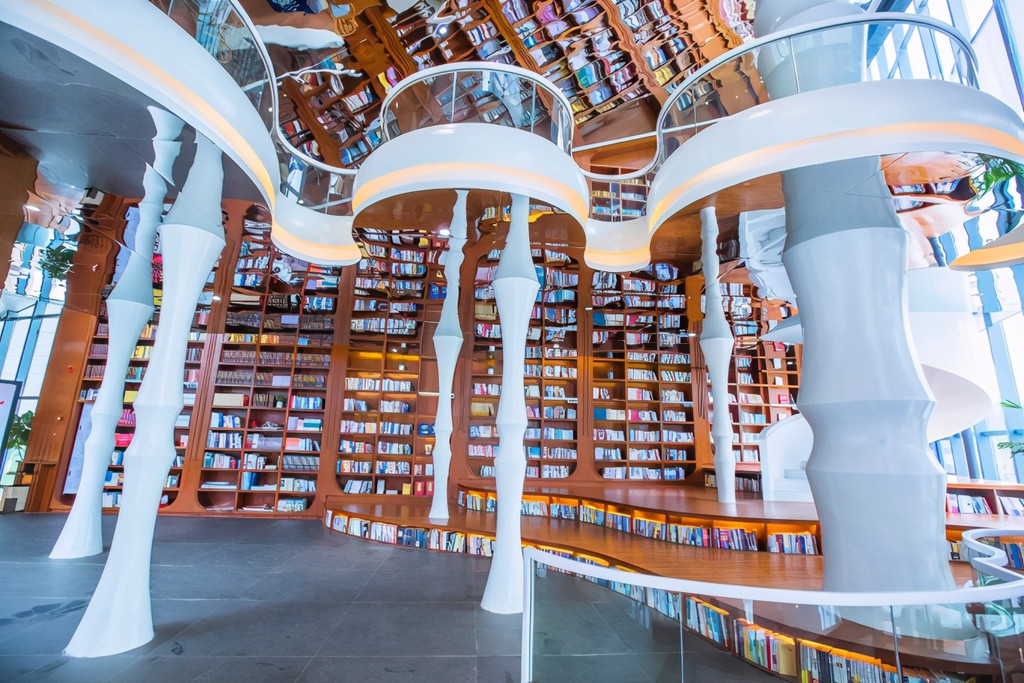 线条打造出动感十足的空间,建筑美学和文学之美在书吧里完美呈现,给人意境深远之感。