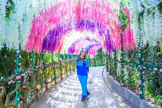 空中客车虽好,爬山追求的却是一个慢慢上行的过程,沿途的好风景才是精华所在。景区打造了多个打卡景点,林海画廊是其中之一。如梦如幻的花朵搭出拱形长廊,遮挡日晒的同时,营造出梦幻轻盈的氛围。人行其间,仿佛走进一帘幽梦之中。