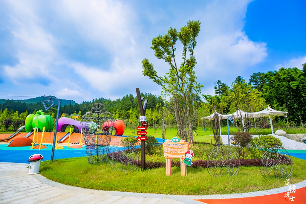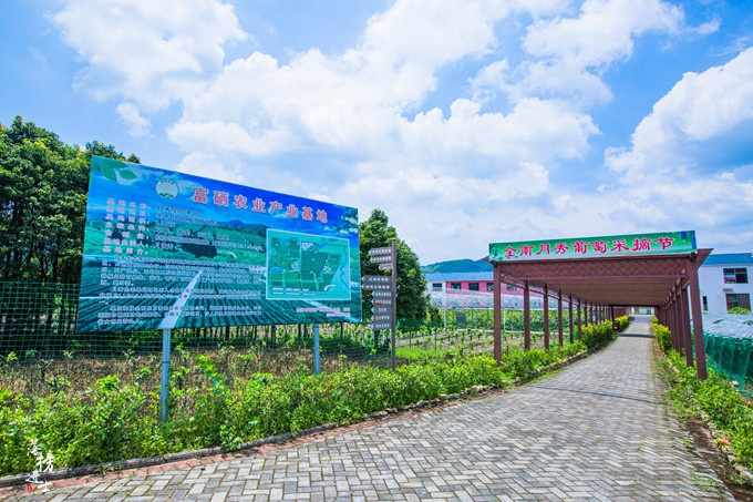 园区种植有桑葚、蓝莓、葡萄、草莓、金橘,有配套的餐饮、拓展场地、游乐园。