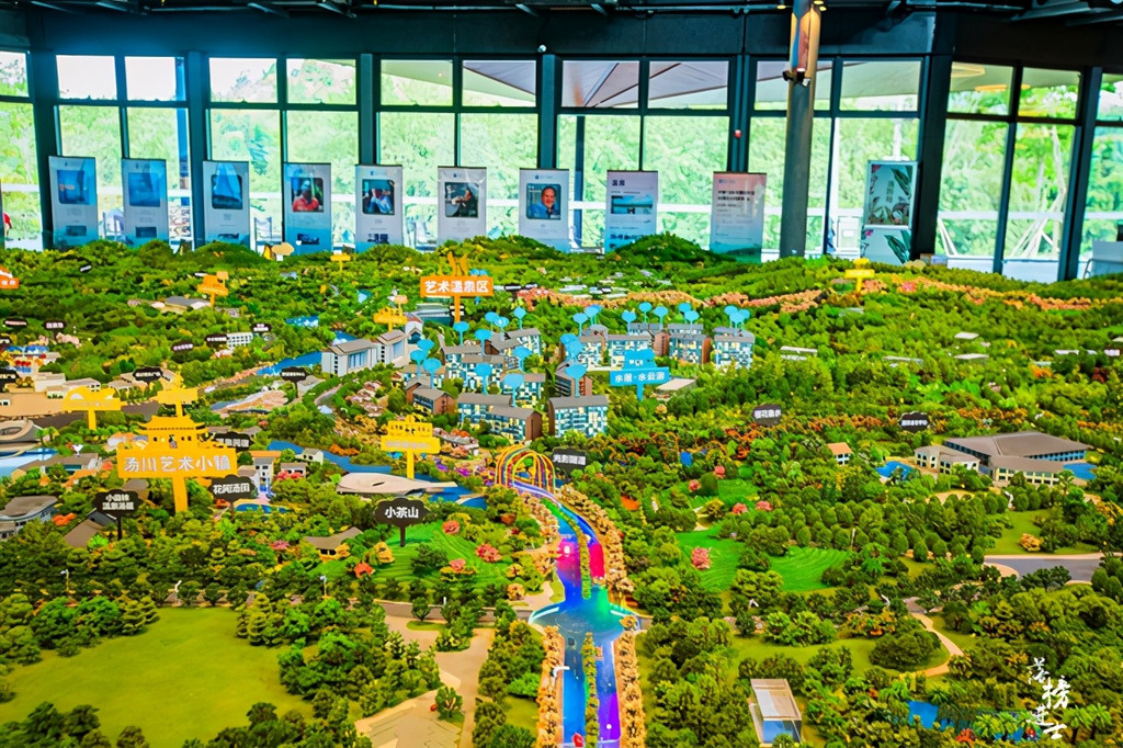 从规划模型已能感受到度假区的面积,十里桃江国际芳香森林度假区是个复合型旅游度假区,计划投资100亿元,分乡旅门户区、艺术温泉区、野奢度假区、芳香产业区四大版块,将重点实施主题乐园、芳香产业特色小镇、国际酒店、国际康养小镇、影视艺术温泉小镇、文旅公寓六大核心项目。