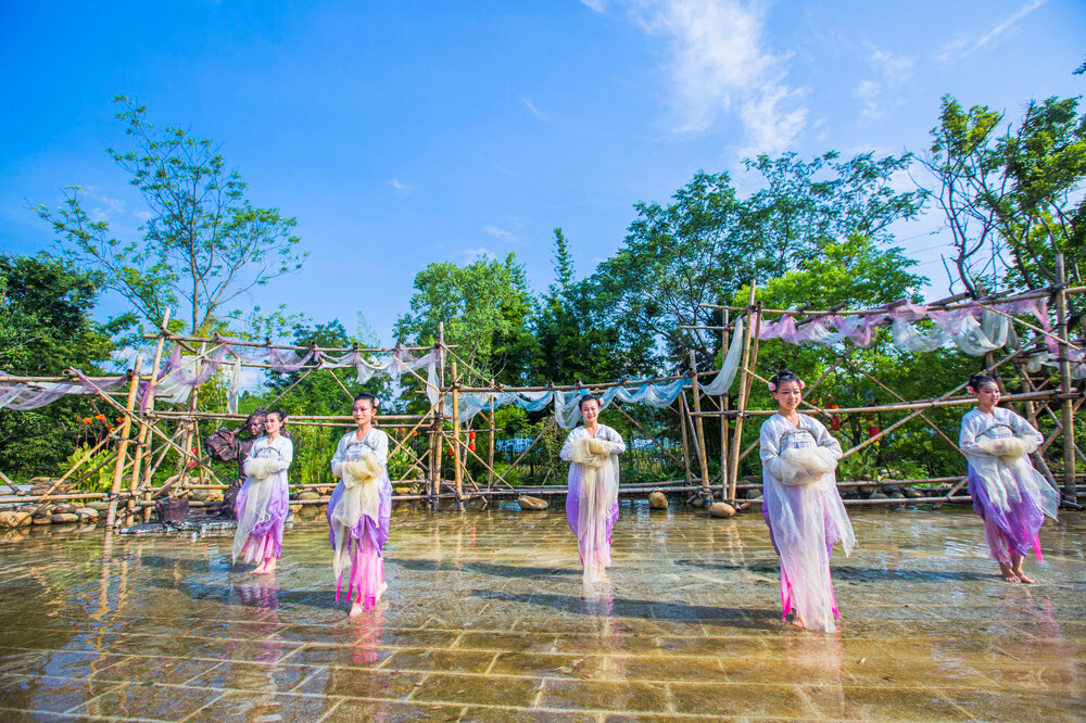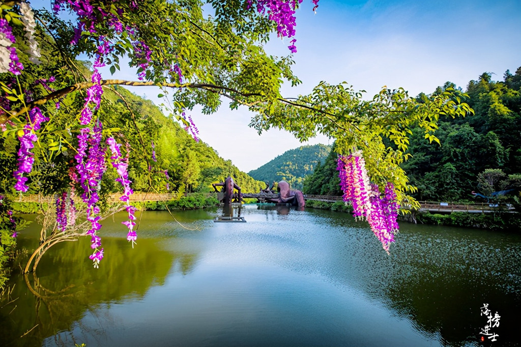 桃江水在度假区内逶迤,桃江两岸以风光秀美著称。泛舟江面,闭上眼,耳边只闻鸟兽虫鸣,整个世界安静得似乎孤身一人;睁开眼,却撞见整个天地,花草树木无不生机勃勃。