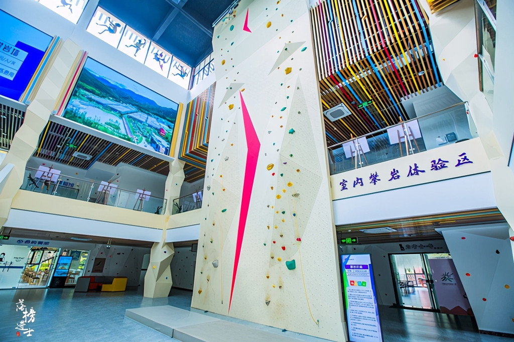 攀岩小镇面积极大,单是户外攀岩基地就占去了4000平方米,小镇内的攀岩墙体全部按照国际攀岩比赛标准打造,玩起来都是专业级的水准。成年人喜欢挑战,小朋友当然也不示弱,小镇除攀岩外,还有专门为小朋友准备的攀爬乐园,十余种游乐设施花样百出,让神兽们充分释放天性,玩得嗨翻天。