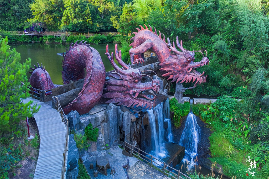 以“天龙山”为名,自然少不了“龙”的元素。在天龙山中山水完美地结合在了一起,眼前两只巨龙昂首盘旋、威武霸气,而它们不单是仅仅可观的景点,还非常好玩,是个地地道道的“喊泉”。