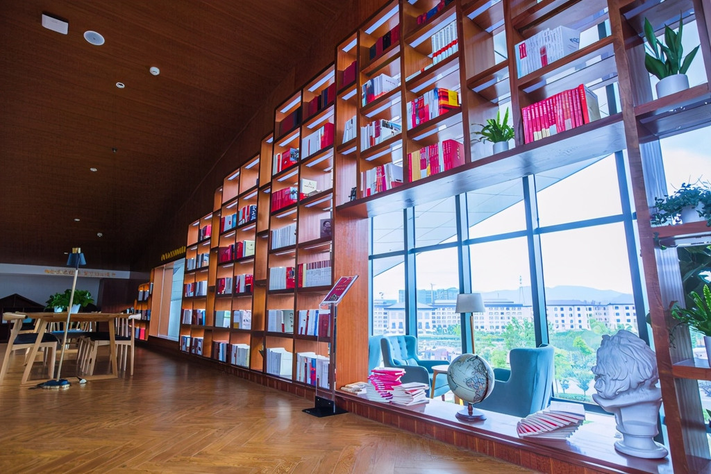 这里的书籍虽然很多,却并不显得拥挤,高大的隔断后就是通透巨大的落地窗。站在窗前,视野毫无障碍,全南这座小县城的身姿可见一斑。