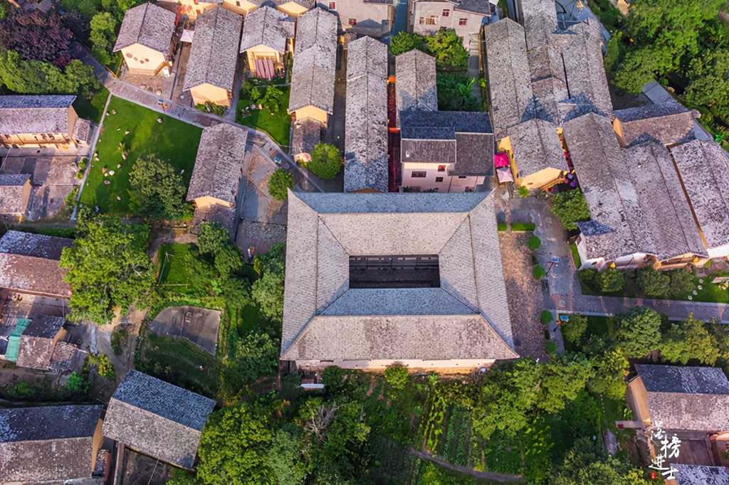 从高处俯瞰,围屋更显恢宏,房顶围合出小小的长方形,仿佛将整个家族庇护在怀中,外界的喧嚣纷扰都被高大的墙体阻隔在外。