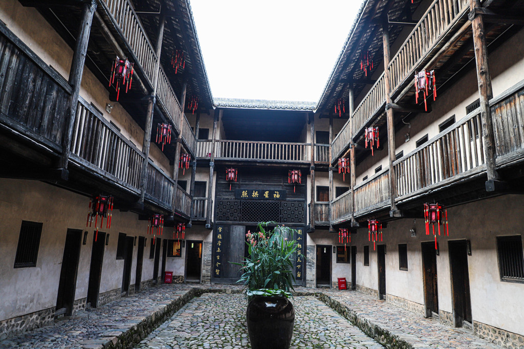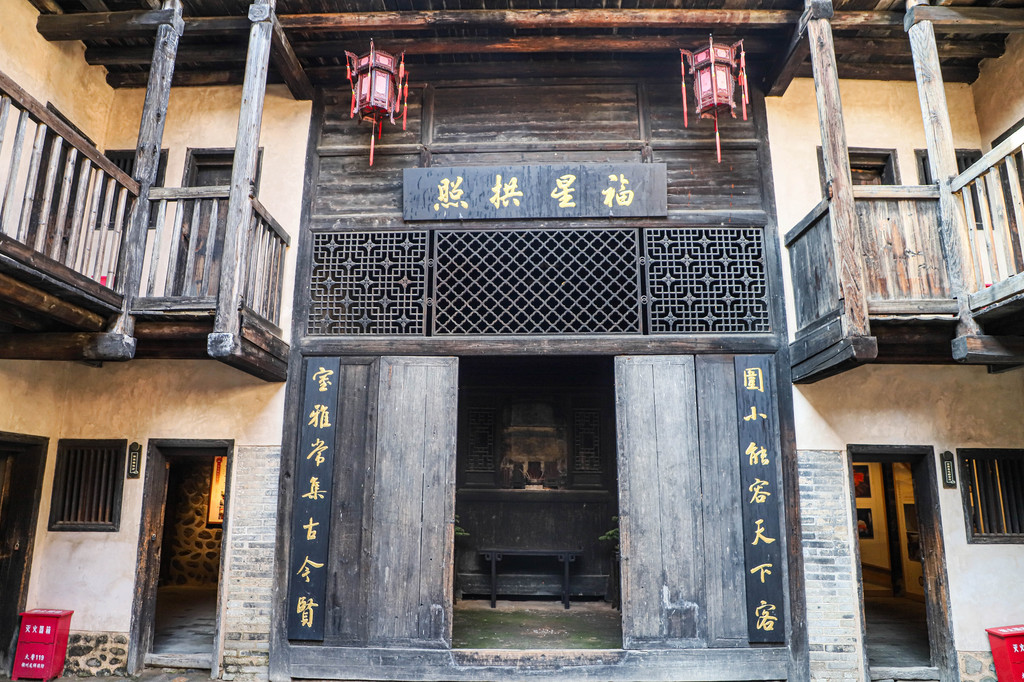 福星围建于清朝咸丰年间,至今已走过了160多个春秋。走进内部,中心位置为天井,可以保证围屋内部的采光及通风,福星围一共有三层高,每层设有17间房屋,房屋之间有环廊相连,设计紧凑但别具一格。