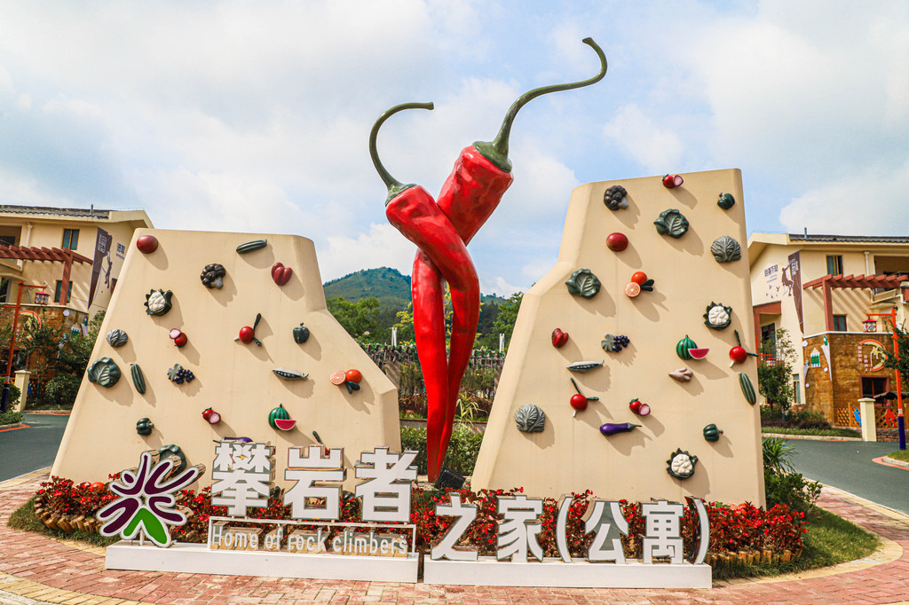 小镇内的游玩设施相当丰富,即使消耗一天也未必够用。那么来都来了,索性住上一晚,感受一下小镇夜晚的活力。攀岩者之家公寓同样充满了卡通趣味,门口凹着造型的辣椒让人忍不住想笑。这里建有10栋楼,共50套房,住在其中,视野开阔,可以直接看到攀岩训练基地举办的各种活动。