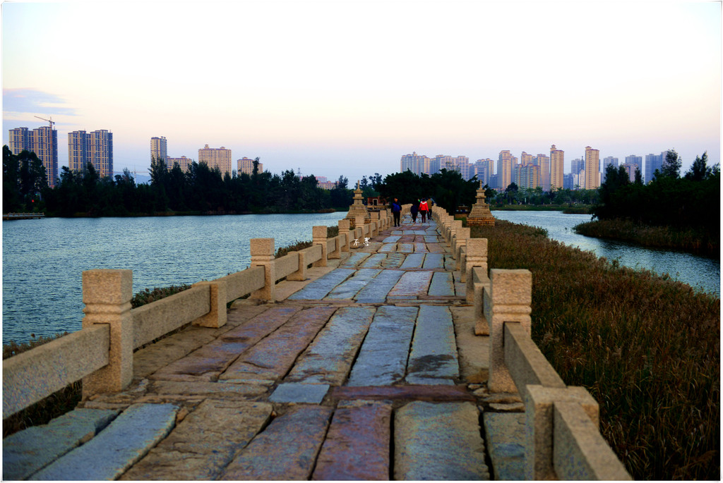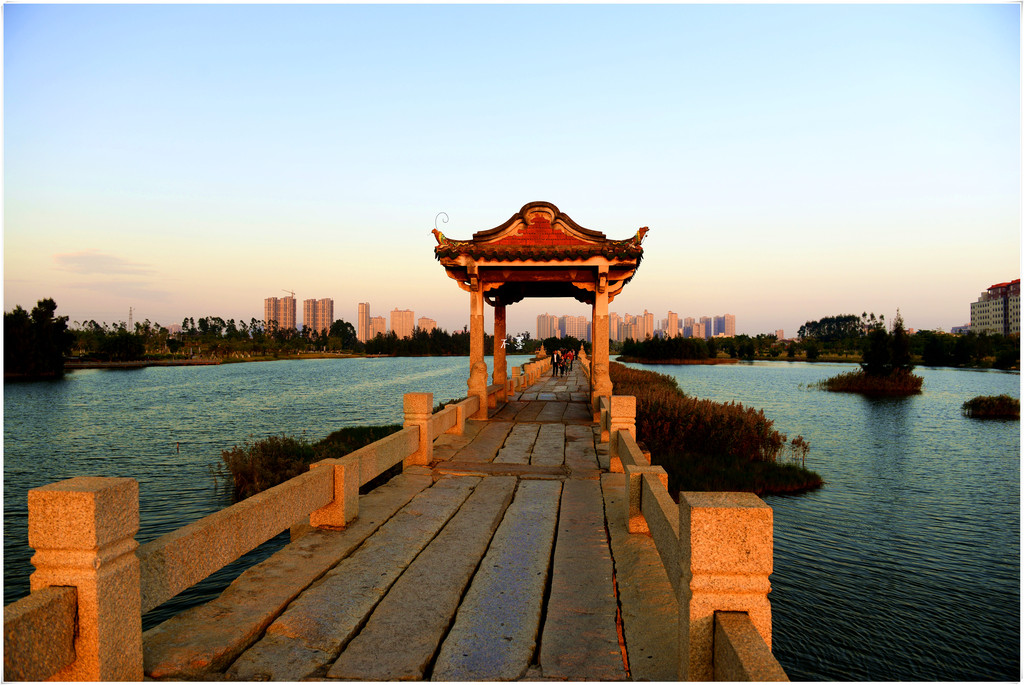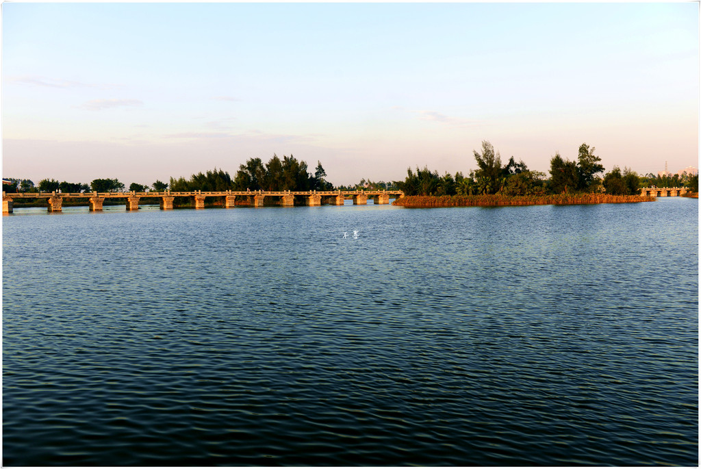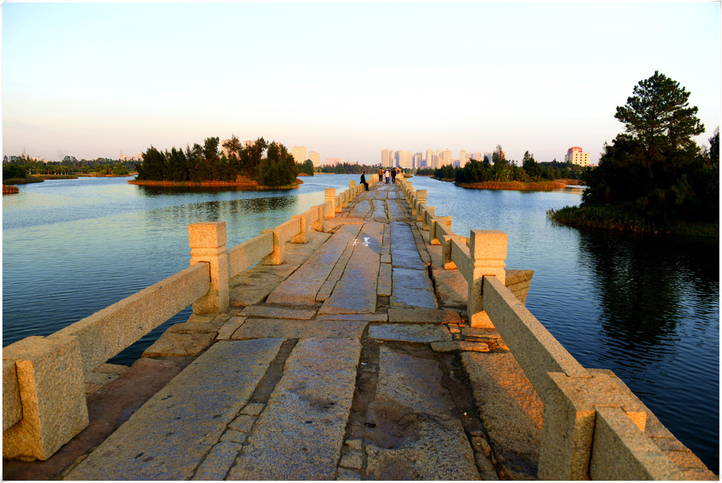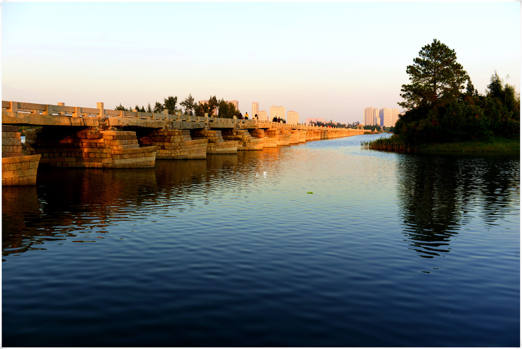 夕阳西下,安平桥被染上一层金色,水映长桥,长桥悠悠,天下长桥无此桥。