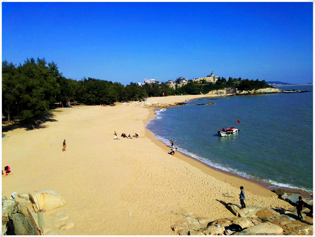 古城外的海滩倒是出奇的干净,虽沙滩不宽也不很长,但沙质细腻柔软,浪静风平,是一处难得的幽静海湾。