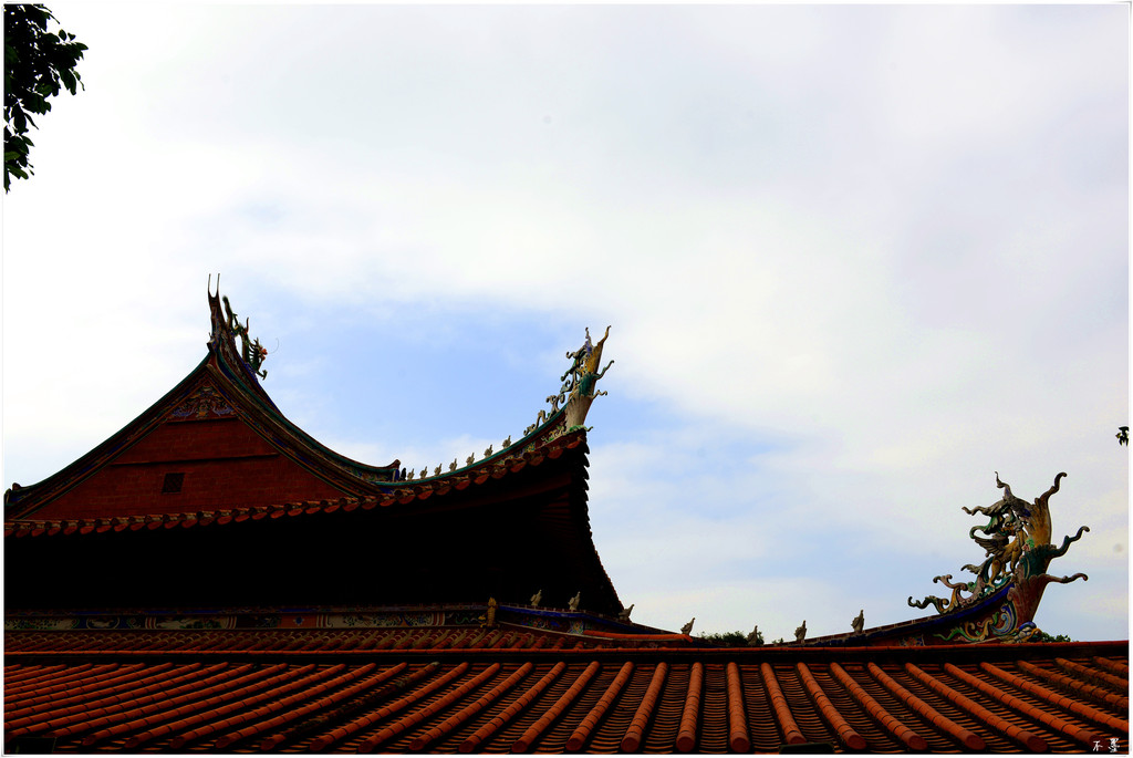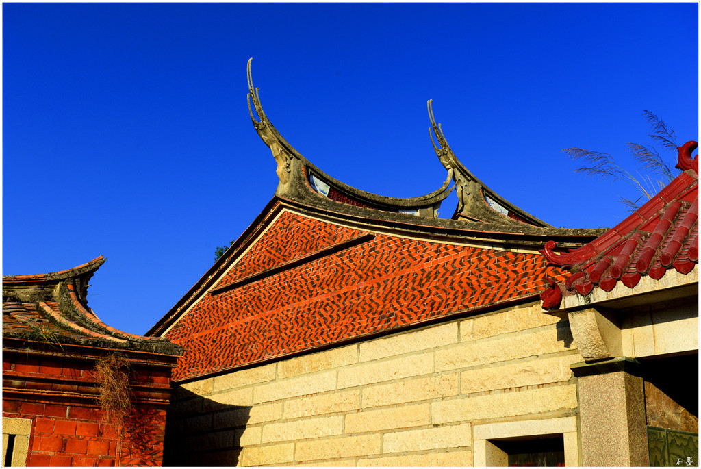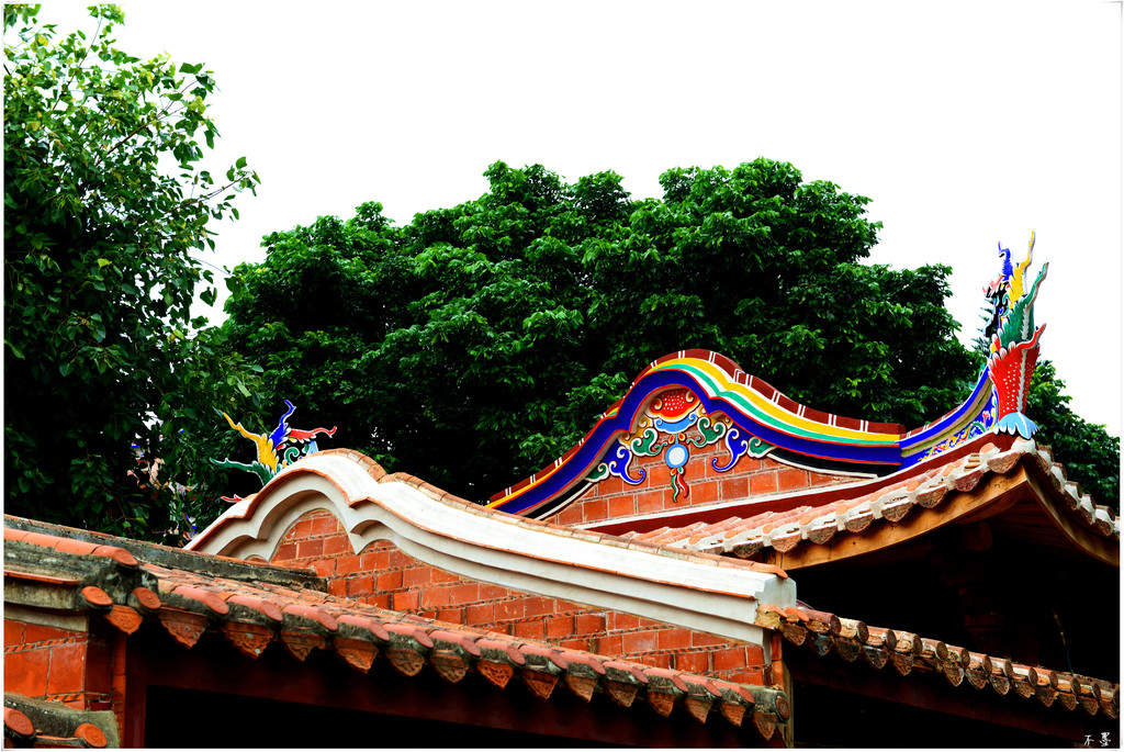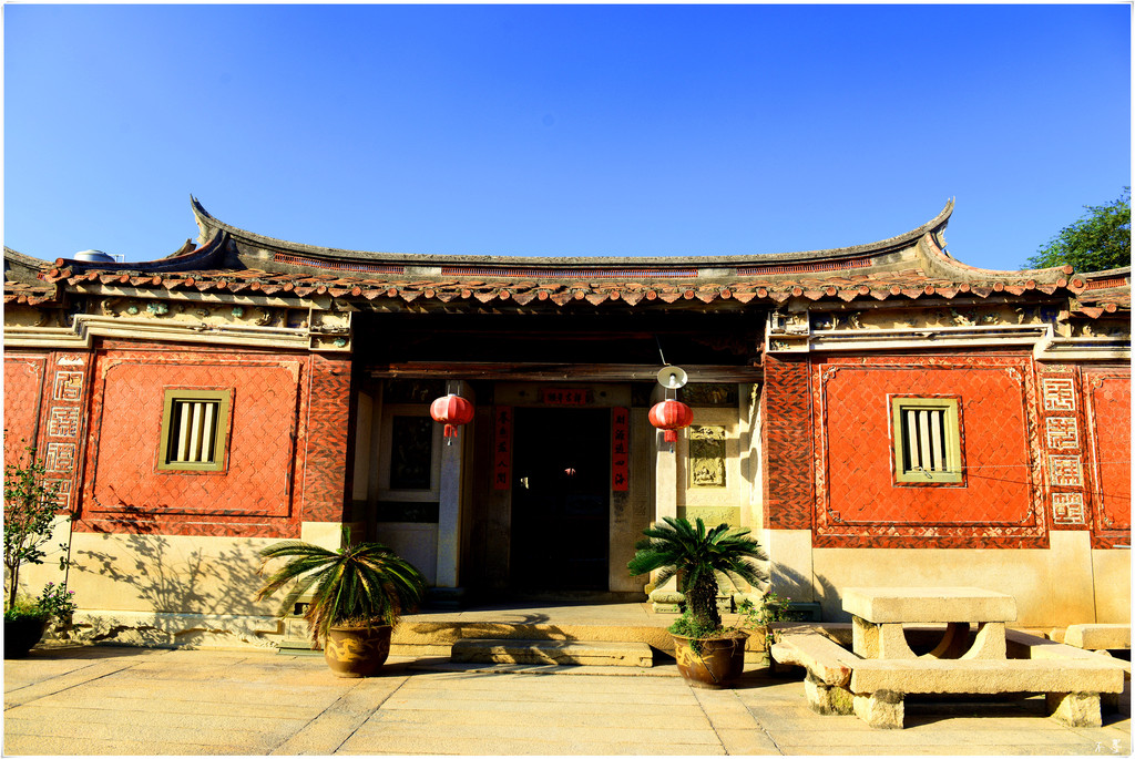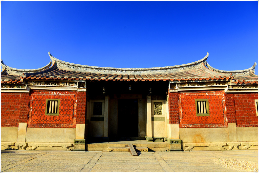 整个建筑雕梁画栋、器宇轩昂,精美的木雕、石雕和泥塑是最大的亮点,屋脊的剪瓷龙雕,造型生动夸张、色彩艳丽,其间配有花鸟走兽,把闽南古建筑的艺术风格表现得淋漓尽致。