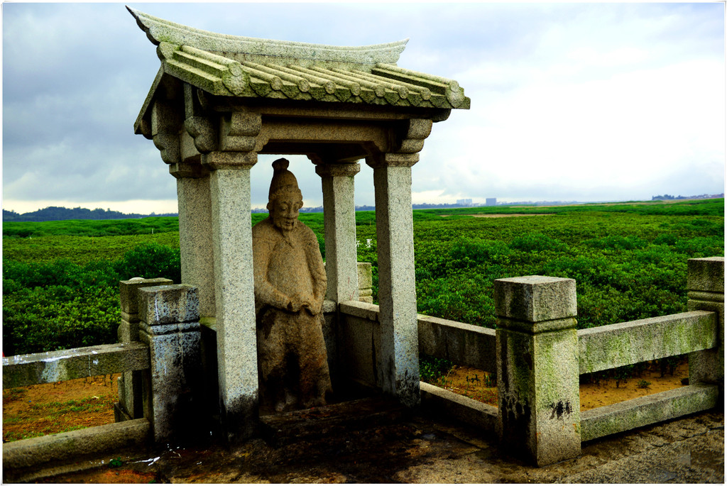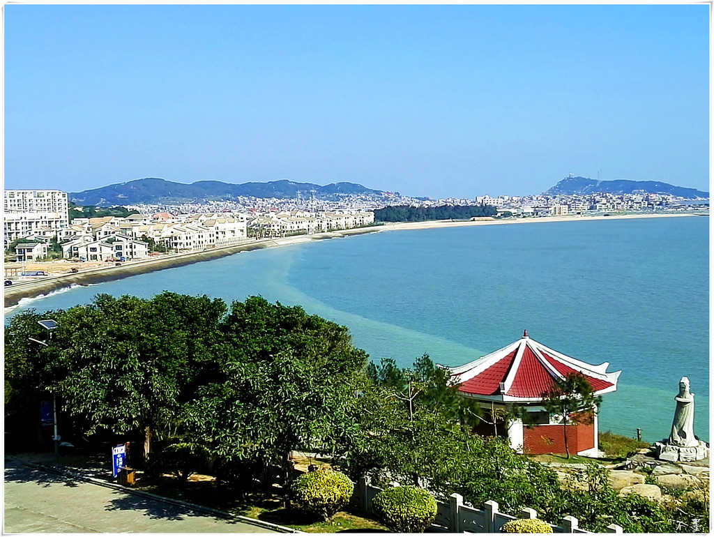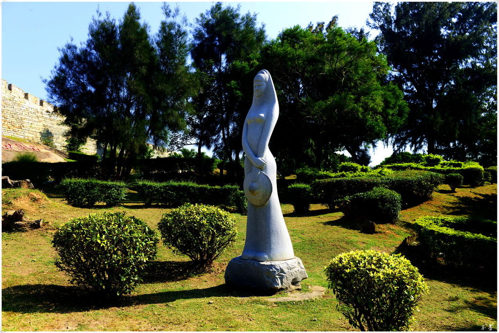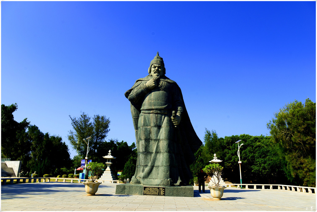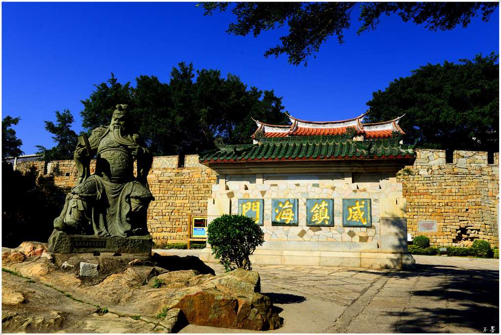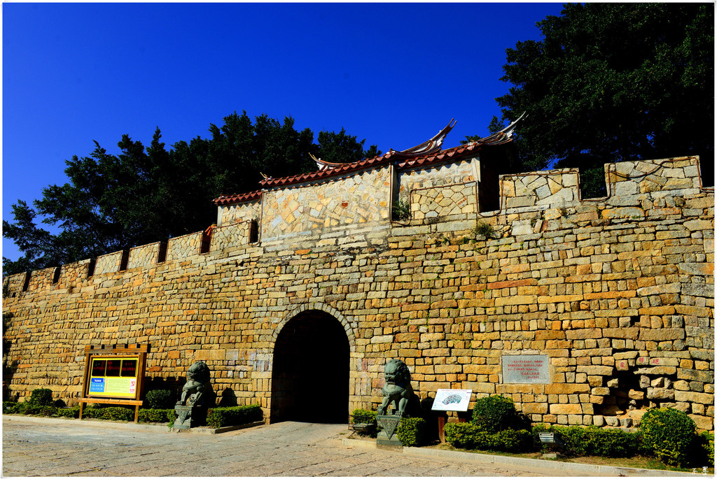 古城南门外,一尊高大的戚继光塑像面朝大海,左手执长刀,右手缕长髯,目光炯炯,神态从容自若,似乎这位昔日的民族英雄至今仍在保卫着这里的每一寸土地。