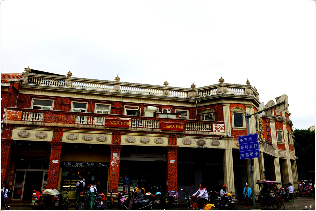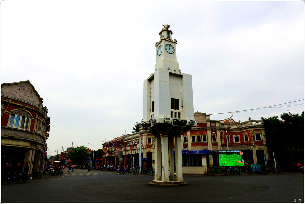 出开元寺沿西街往东,是曾经的老泉州中心,两侧的建筑依然保留着中西合璧的模样。与中山路交叉口处一座西式钟楼格外醒目,虽然现在看起来显得有些单薄,但与周围的建筑还是很协调的。钟楼建于民国年间(1934年),明显的西式风格建筑,是当时泉州的标志。