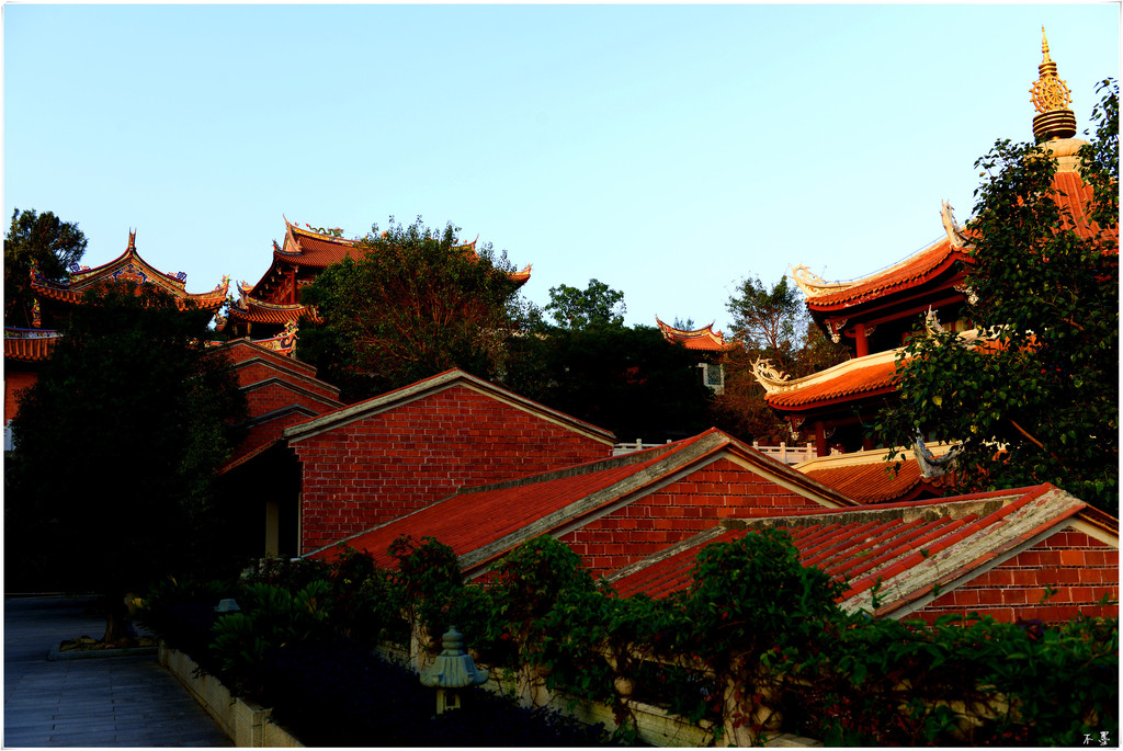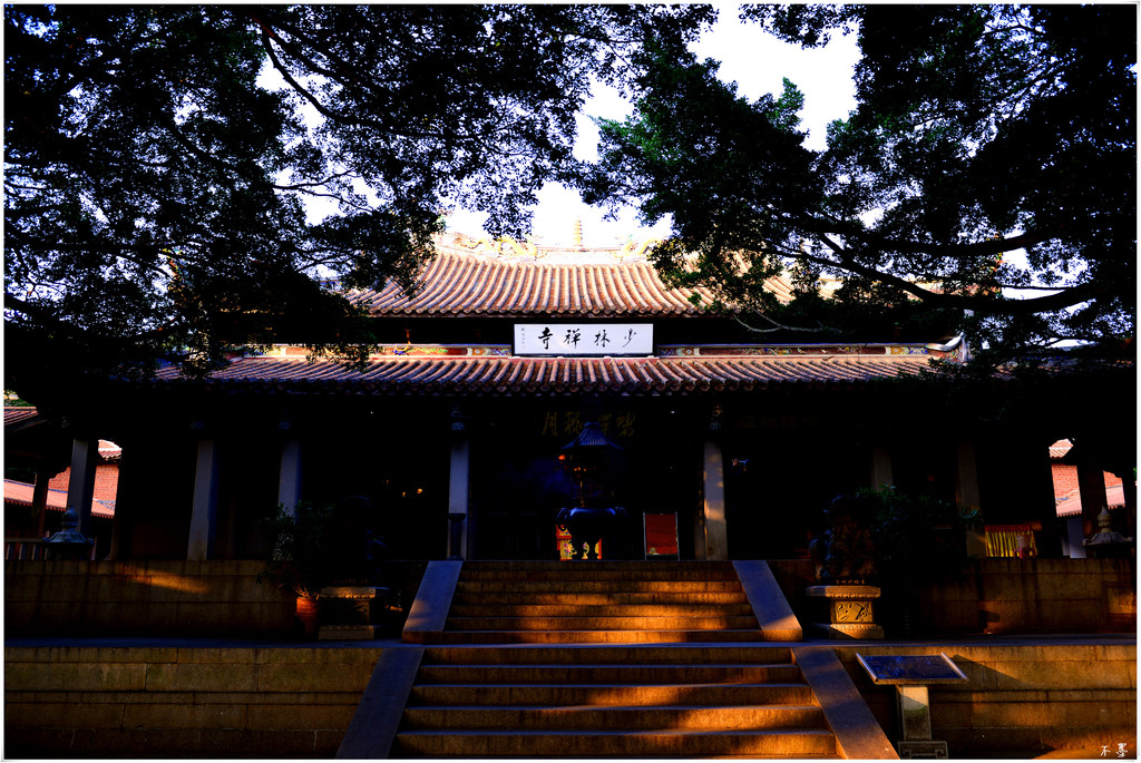 泉州东禅少林寺还建有藏经阁、文殊阁、普贤阁等建筑。落日余晖映照下,一片暖暖的色彩,可惜没能看到习武者的身影,有些遗憾。