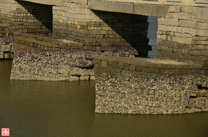 铺设在洛阳桥上的都是10米多长、又厚又大的石板,据估测,每一块重达二三十吨。如何能保证负重巨大的桥体安然无恙,工匠们发明了“种蛎固基法”,利用牡蛎的这个特性,在桥基上种牡蛎,牡蛎有两个壳,一个壳附在岩礁上或者另一个牡蛎上,互相交结在一起,另一个壳则盖着自己的软体。牡蛎繁殖能力很强,而且无孔不入,一旦跟石胶结黏合成一片后,用铁铲也铲不下来。
