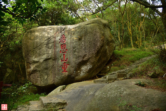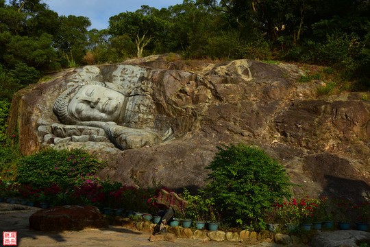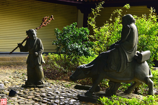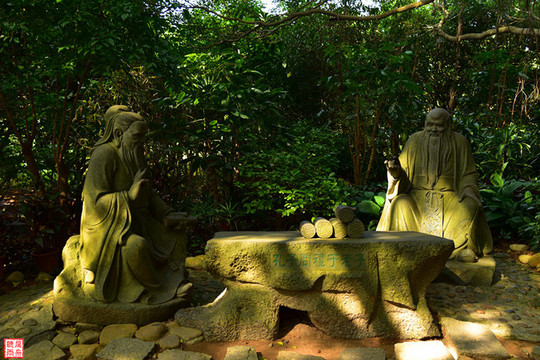 清源山位于泉州市区的北部,有“闽海蓬莱第一山”之美誉。这里最负盛名的是山脚一尊宋代的老君造像,这也是全国最大的、艺术价值最高的道教石雕。据《泉州府志》记载:“石像天成,好事者为略施雕琢。”寥寥数语,使之更具有神秘色彩。石像高5.1米,厚7.2米,宽7.3米,席地面积为55平方米。石像头戴风帽,额纹清晰,两眼老君岩平视,鼻梁高突,右耳垂肩,苍髯飞动,脸含笑容,左手依膝,右手凭几,食指与小指微前倾,似能弹物,背屏青山,巍然端坐,更显 空山幽谷,离绝尘世。关于老子的传说故事有很多,泉州人说老子逍遁于函谷关,显圣成仙于清源山。
