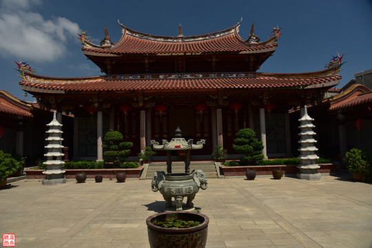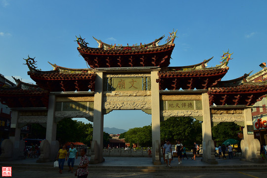 涂门街位于泉州市区中心地带,东起温陵路,西至中山路,全长1005米,是集商贸、旅游、文化等为一体的繁荣地段。在这条长仅1000余米的街道上,分布着13处宋元文化遗存———清净寺、泉州府文庙、关帝庙、东观西台、祖闾苏、世家大厝、棋盘园、东鲁巷、三十二间巷等。其中,游人最多的是比邻而居的敬奉孔子的文庙、敬奉真主的清净寺和敬奉关公的关帝庙。