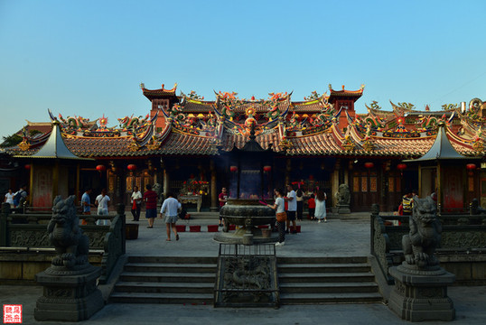 天后宫位于泉州市区南门天后路一号,始建宋庆元二年(公元1196年),是历代的“蕃舶客航聚集之地”。天后宫是泉州人为妈祖修筑的宫殿。妈祖是东南沿海的渔民和船工们每次出海都要膜拜的神灵,妈祖以她慈爱、勤劳、聪慧、圣洁的品格祝福并保佑她的信众健康平安发家致富,祝福保佑着泉州人把世代的文化传播到四海八荒。
