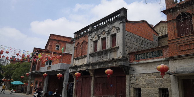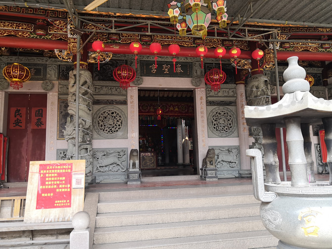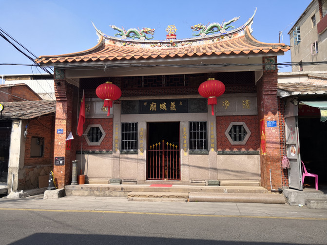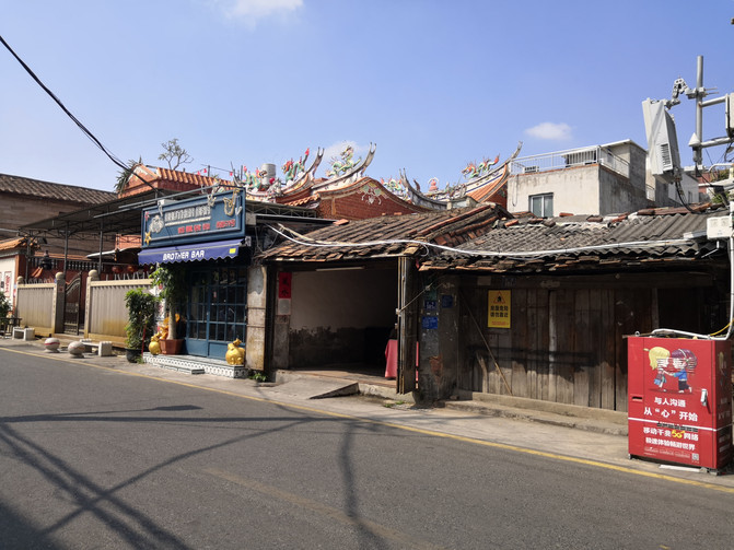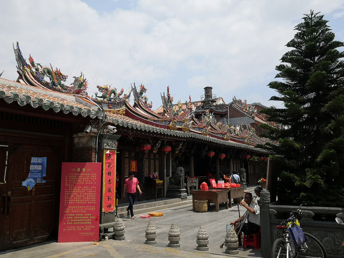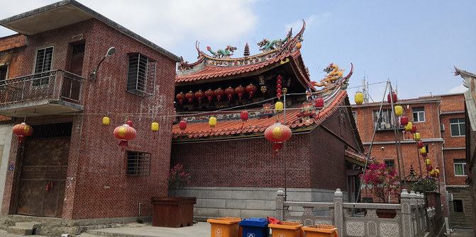 看完洛阳桥溜达着从桥南头往公交站走去,边走边看路边的村子,民居也都是很有泉州特色的红砖花檐房屋,村子里都少不了寺庙: