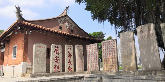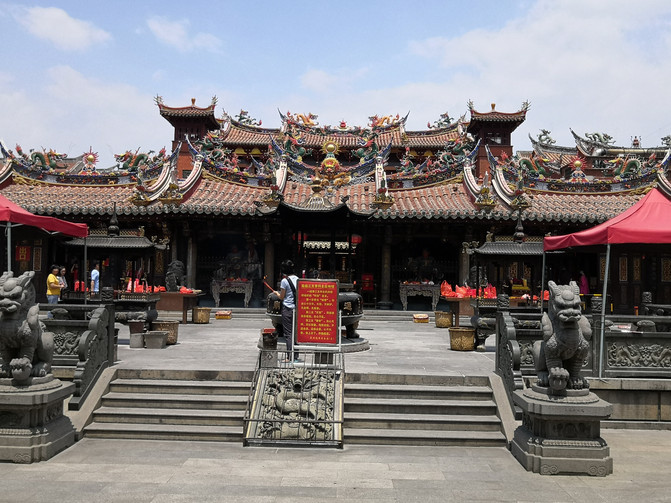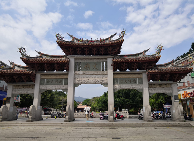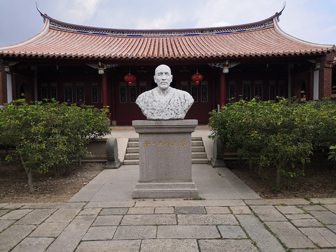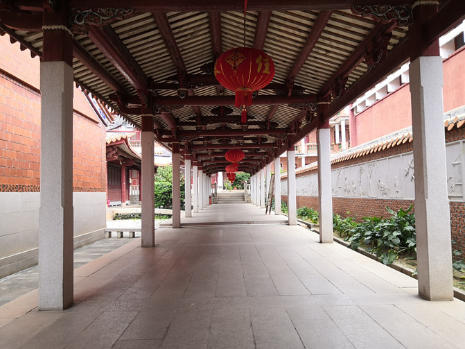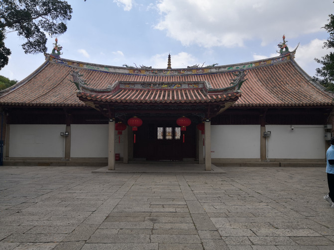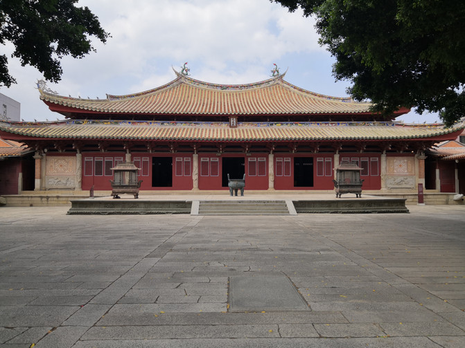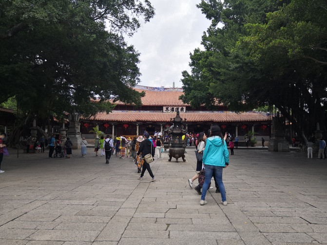 之前坐车的时候路过看到了文庙,与往常一样,总要去拜拜孔老夫子,这几乎成了我的信仰。每次站在孔子像前,仰视他智慧的容颜之后自然而然地低头敬拜,祈求孔老夫子保佑我身边每个认真读书的孩子们都能如愿以偿。这里的文庙建筑风格与以往我见到的文庙夫子庙等风格大不一样,跟其他建筑一样这也是很闽南味道的。院内也没有以往总能看到的典型的礼教姿态的孔子雕像,只在大成殿里有些孔子壁画,而大成殿外正中上方的“大成殿”这三个字也小得过于低调。