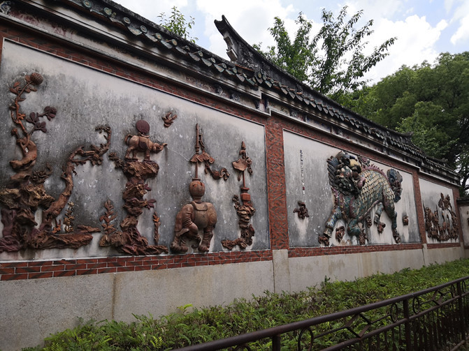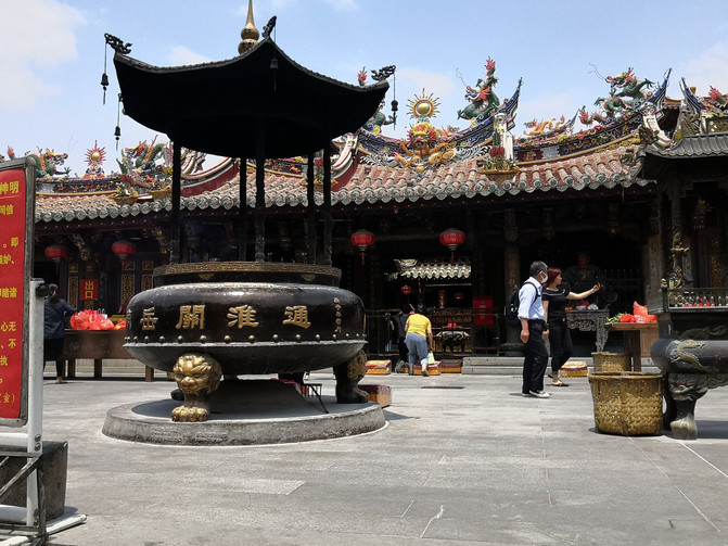 从开元寺出来,本来想去清净寺,但坐公交车一下车,就看到花里胡哨的一座寺庙,细看才知道叫通淮关岳庙,也就是供奉关公关云长和岳飞的庙。这座寺庙建筑房檐上的闽南特色花琉璃瓦简直太夸张了,密密麻麻地布满房檐和屋脊,显得过于杂乱甚至艳俗。但细看每一局部花瓷雕,倒也都是十分精美。