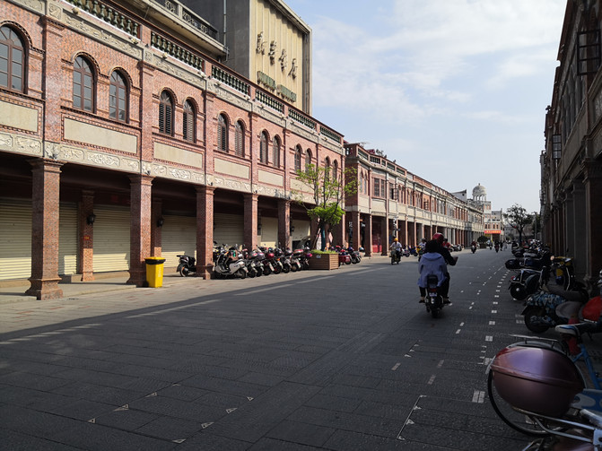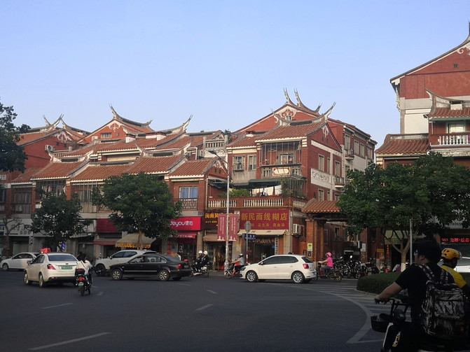 随便走走,看看泉州的街景:街道宽敞、干净整洁,居民大多以电动自行车(摩托车)出行,路边的普通民房住宅楼也都有很明显的泉州特色。
