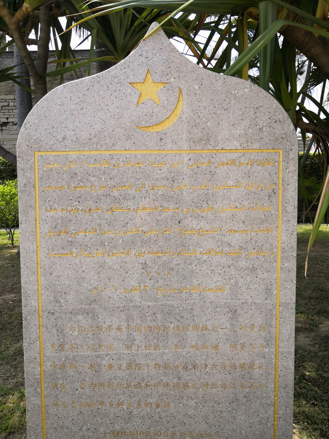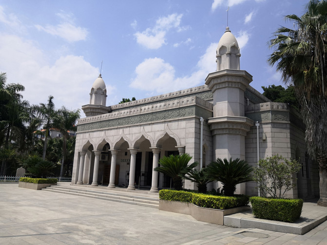 不远处就是清净寺。刚看过香烟缭绕、花里胡哨的关岳庙,来到清净寺,立刻感觉神清心静了许多。据介绍,这是阿拉伯穆斯林在中国创建的现存最古老的清真寺,始建于1009年,多年来几经受损几经修建,如今寺院内最为宏伟的礼拜堂是2008年由阿曼苏丹国王捐资新建的,作为中阿友谊的象征。礼拜堂门开着,堂内静谧、宽敞,有几位阿拉伯模样的信徒正在席地盘坐,静静地、虔诚地念经,不便打扰,匆匆离开。