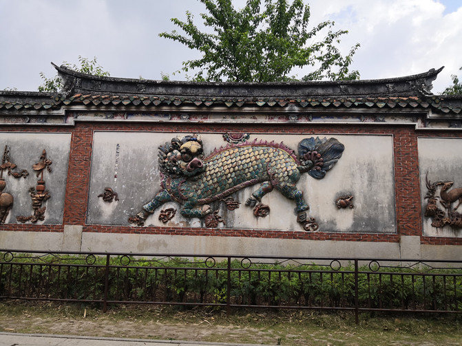 在仁寿塔旁边有一面彩色石刻的麒麟壁,麒麟两侧刻有牡丹、灵芝、莲、鹿、鹤等寓意福、禄、寿的吉祥物,工艺十分精美。过去很多地方只见过九龙壁,这么精美的麒麟壁还是难得见到的。