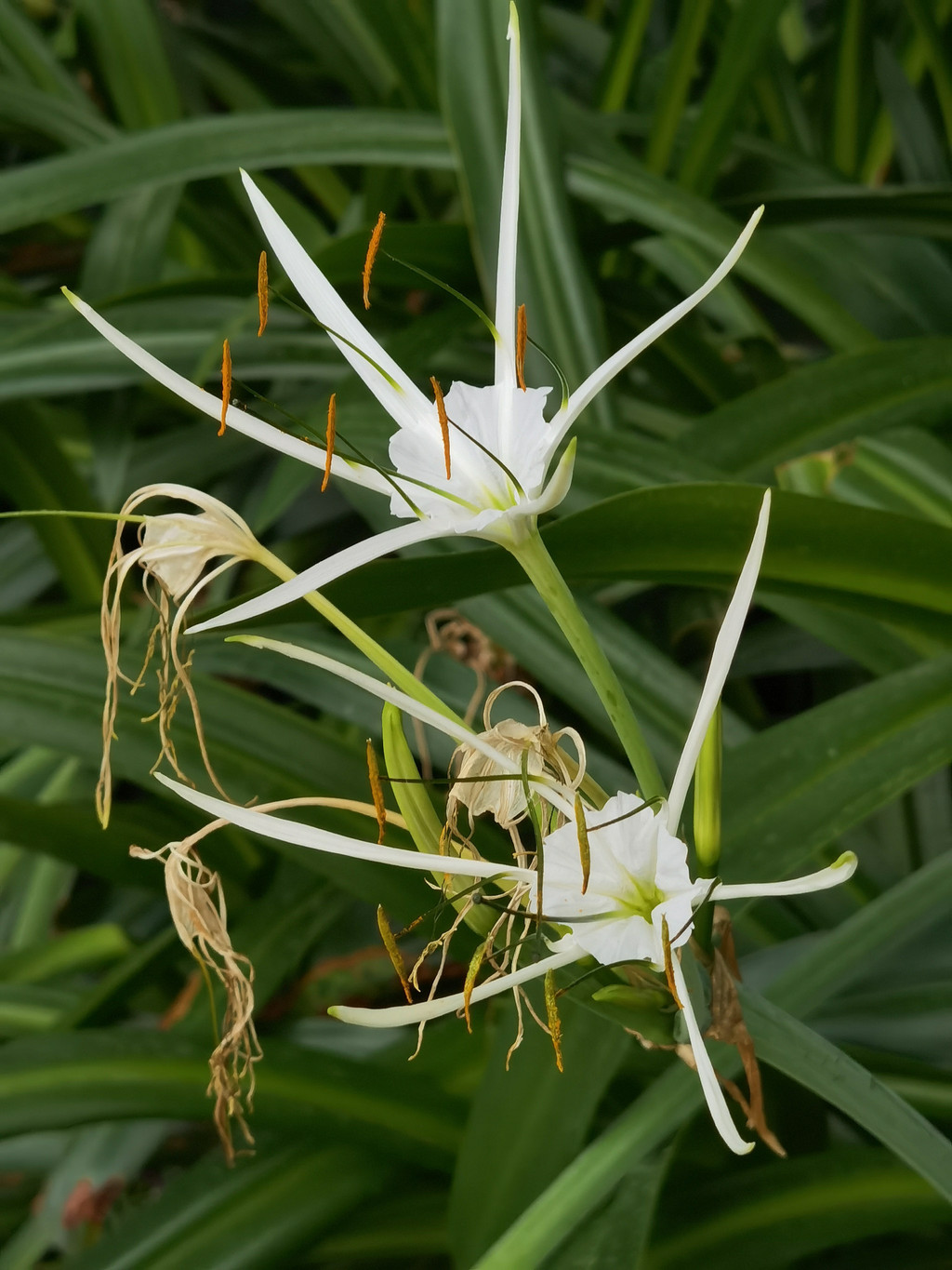 南国的植物都是高大茂密的,五色梅都可以长的和夹竹桃那么大,有些树上还有“吊死鬼”,所以除了主路,边上都不敢去,怕蛇 。