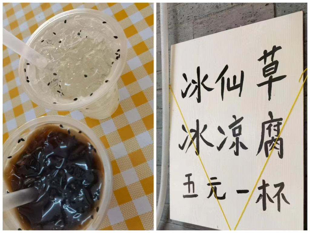 冰仙草和冰凉腐,莲都夏季特色小吃,和重庆的冰粉口感相似,加薄荷水和芝麻糖,QQ凉凉,吸一口 ,带着砂糖的颗粒感和芝麻香。