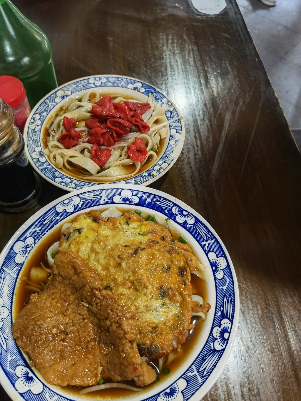 缙云土爽面和缙云烧饼都在这里吃到了,挺好吃的,面条细滑柔软清爽,但又不是烂糊面,二个荷包蛋一碗面15。烧饼现做现烤,梅干菜味,表脆内糯。