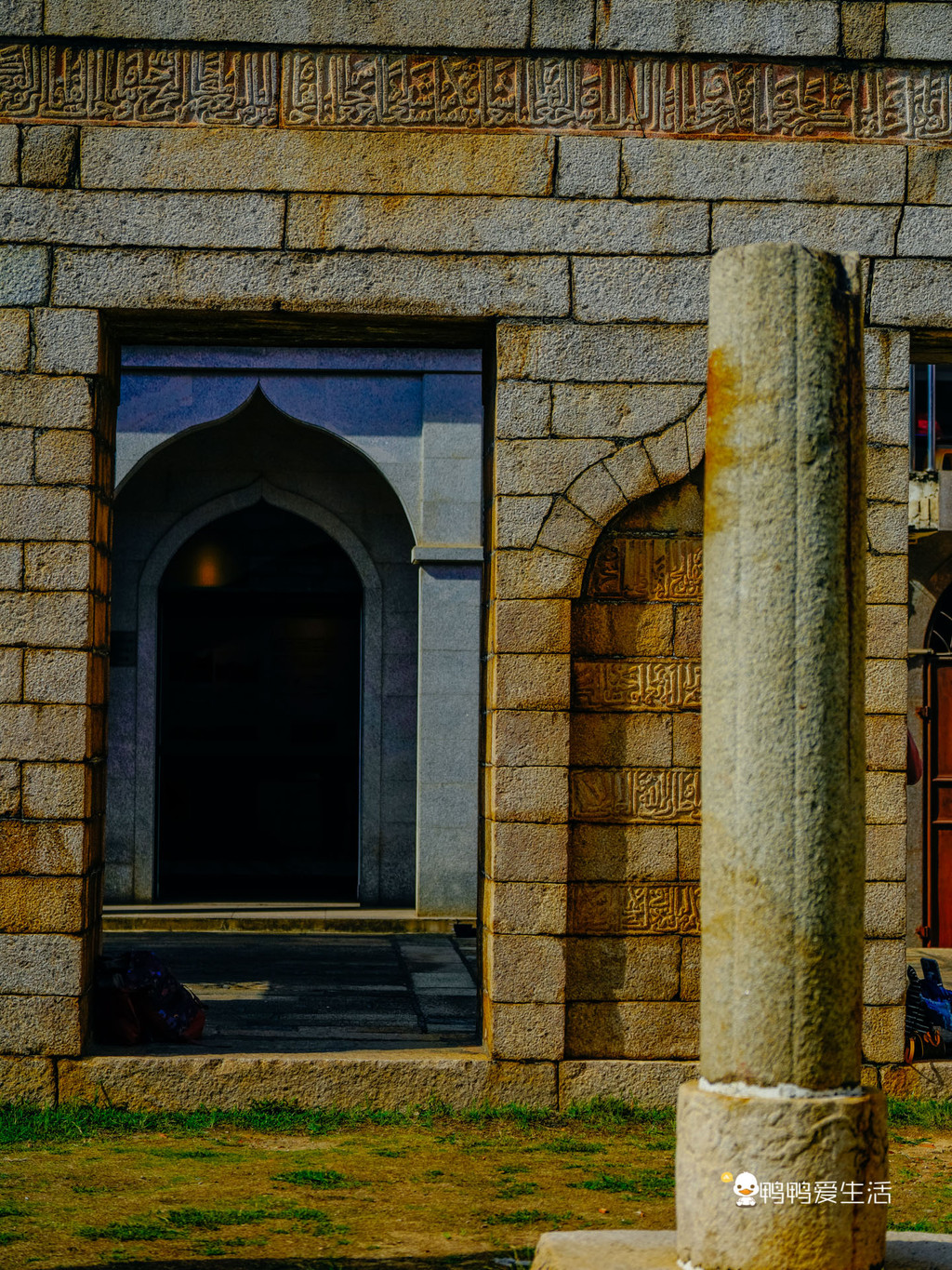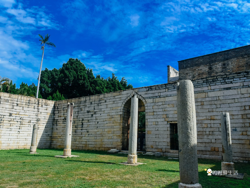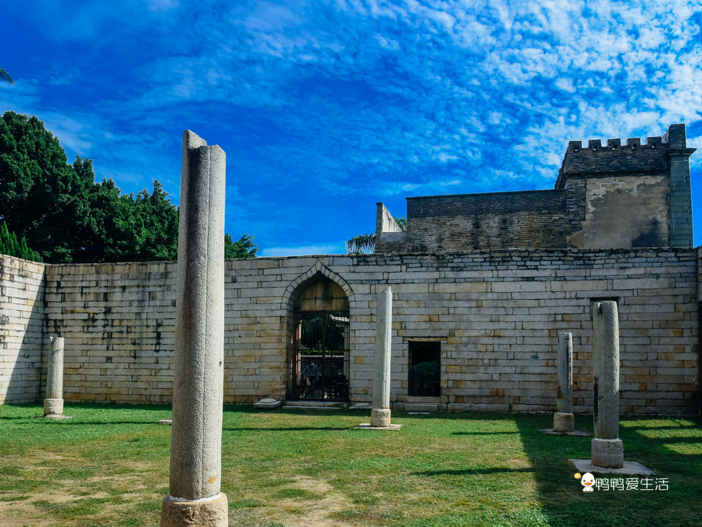 清净寺内最令人遐想万分的要数如今空旷的奉天坛,一座座石柱孤独而又倔强的耸立在上面,它们见证了泉州千年的历史。站在这里,思绪仿佛飘到千年前,奉天坛仍完好之时,巨大的圆顶下教徒叩拜真主的场景。