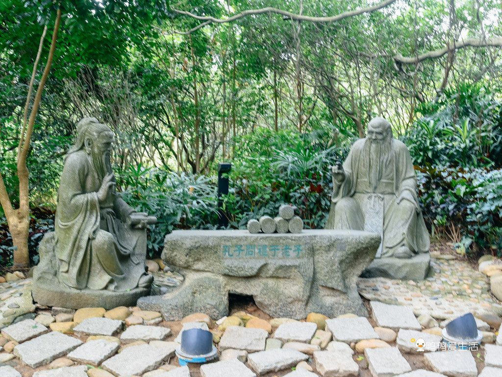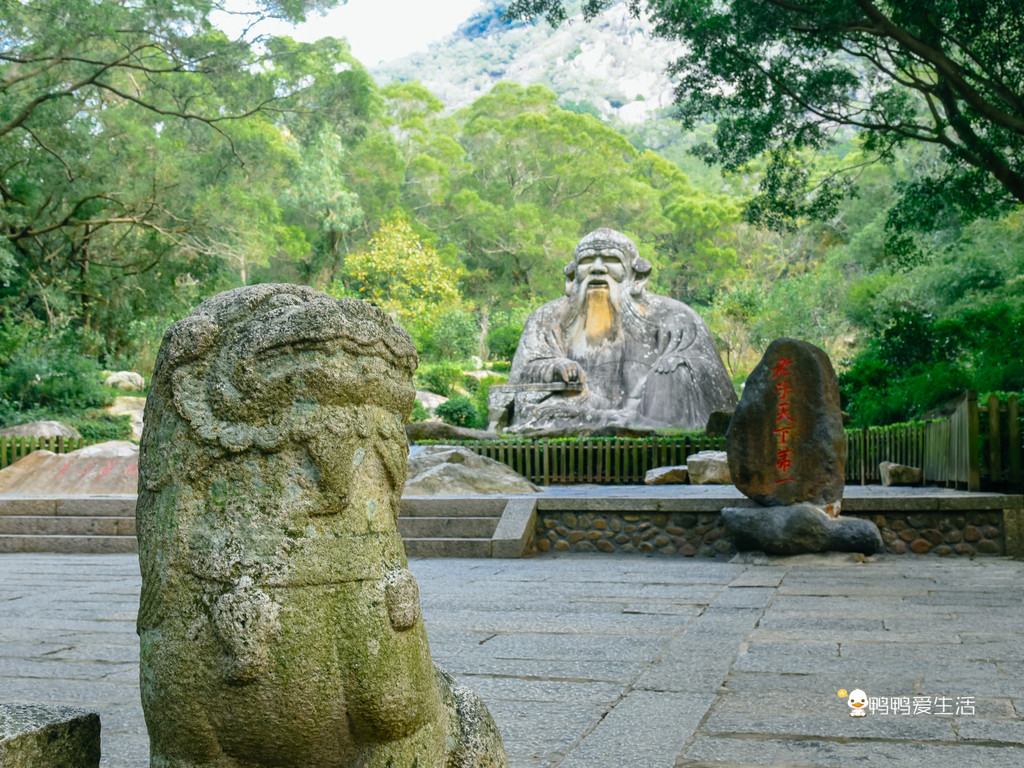 在石像前方还有“老子天下第一”的石刻,也可见老子的“江湖地位”。在景区内还有一个“孔子问道老子”的雕像,据史书记载,公元前6世纪,孔子曾问道老子,赞叹老子的哲学思想的精深,大受启发,后来成为儒家思想的创始人,其哲学思想与老子所创立的道家思想一起称为中国的主流文化,至今还影响着我们的人生观、世界观和生活方式。
