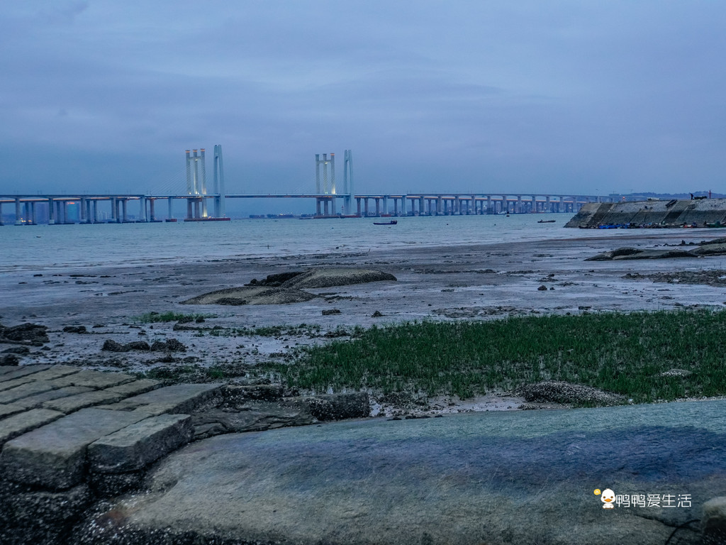 夕阳西下之时,金灿灿的洒在海面上,洒在桥面上,美不胜收!