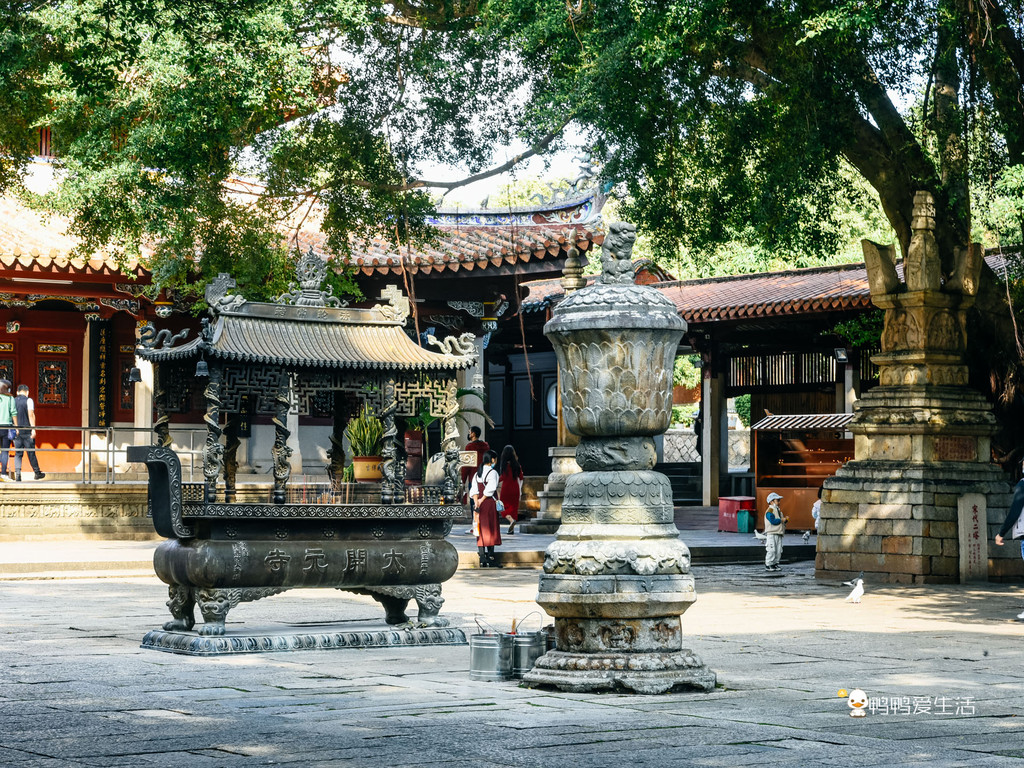 泉州开元寺是体现这种多元宗教文化因素并存的集大成者。如今寺内香火旺盛,还存有中国现存三大祭坛之一的甘露祭坛。而在大雄宝殿前方的空地上,还可以看到不少和平鸽在此信步停留,跟玩耍的孩童,祈福的老人构成了一幅和谐的画面,让人不禁嘴角上扬。