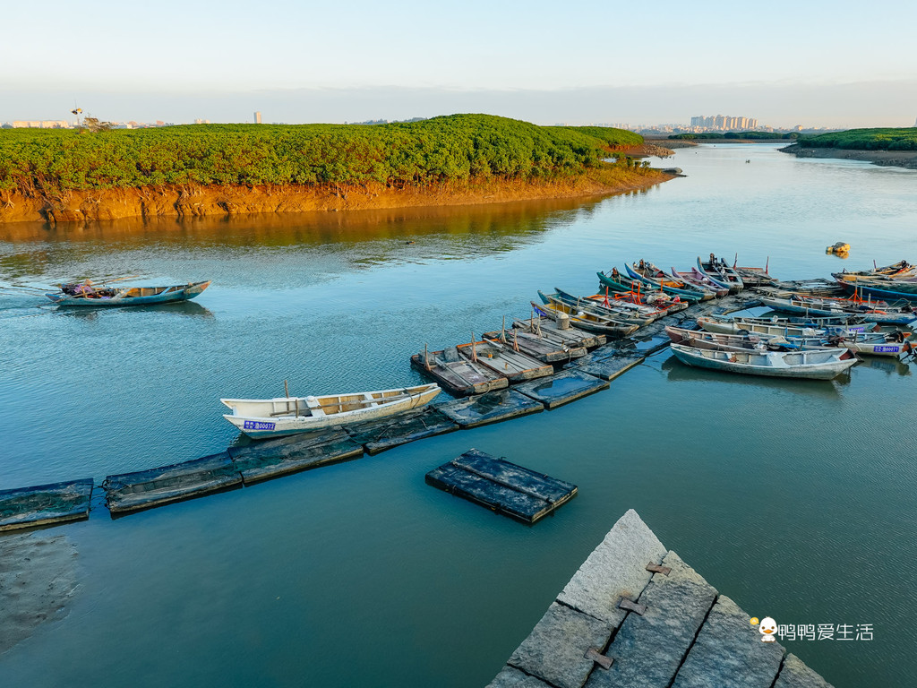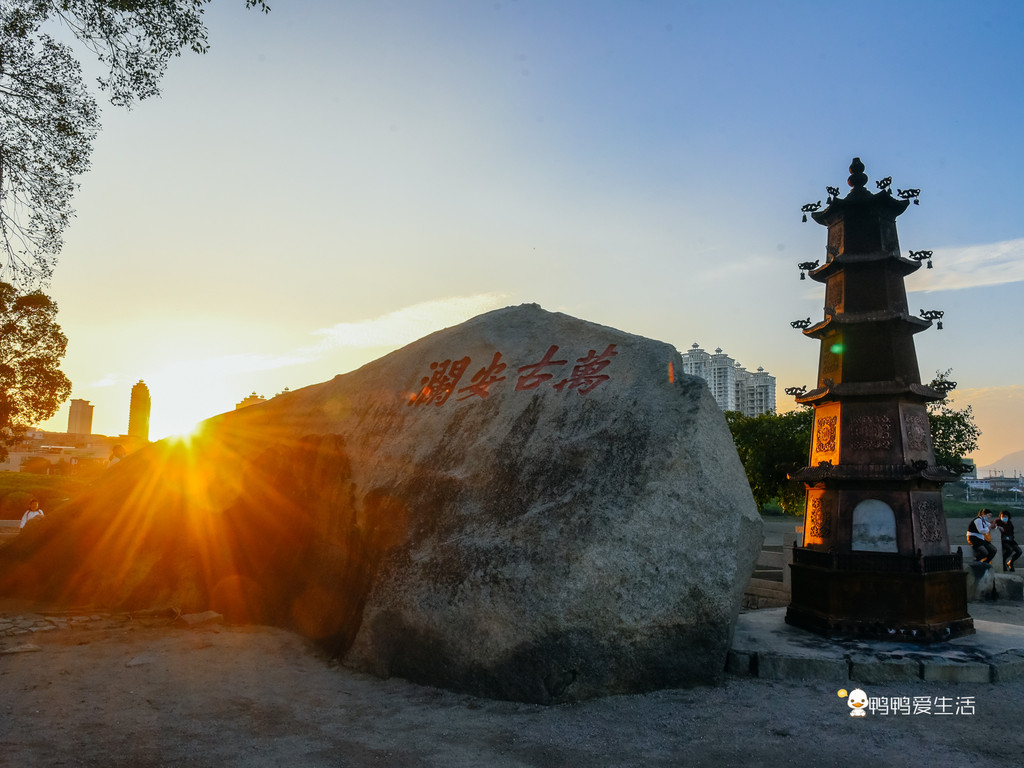 傍晚时分,这里是欣赏落日的最好地方,夕阳下的古渡口和引堤,红霞洒满海面,无限美好。